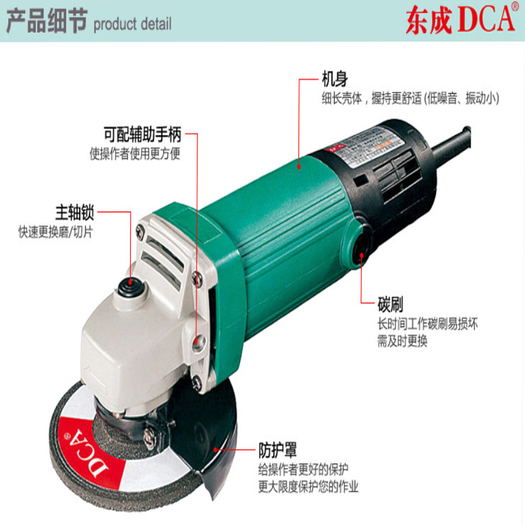 DCA角向磨光機(jī)S1M-FF03-100A人機(jī)交互設(shè)計(jì)舒適使用 纖細(xì)機(jī)身設(shè)計(jì) 舒適單手握持