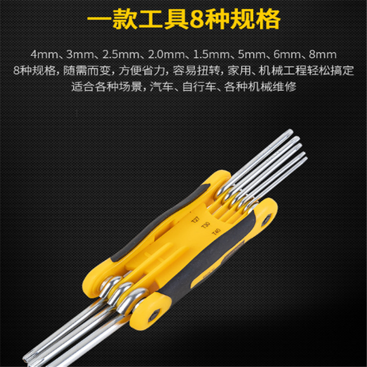 得力折疊平頭內(nèi)六角8件套1.5可調(diào)松緊度。