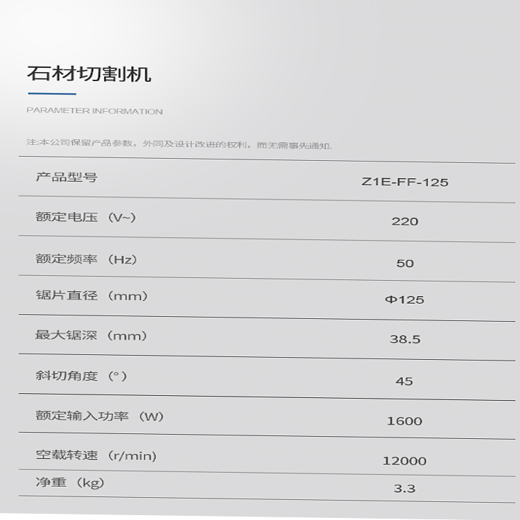 東成石材切割機Z1E-FF-125動力強勁,運行穩(wěn)定,負載強大,效率更高