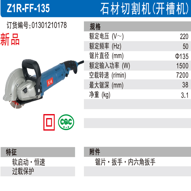 東成石材切割機(jī)(開槽機(jī))Z1R-FF-135一機(jī)多用,雙重絕緣,CQC認(rèn)證
