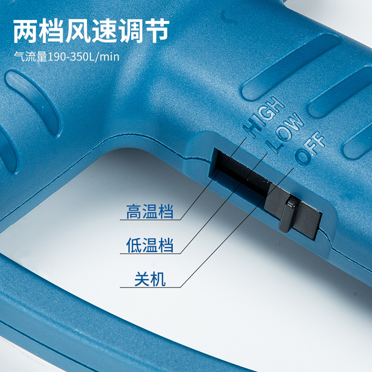 熱風(fēng)槍兩檔風(fēng)速調(diào)節(jié)氣流量190-350L/min