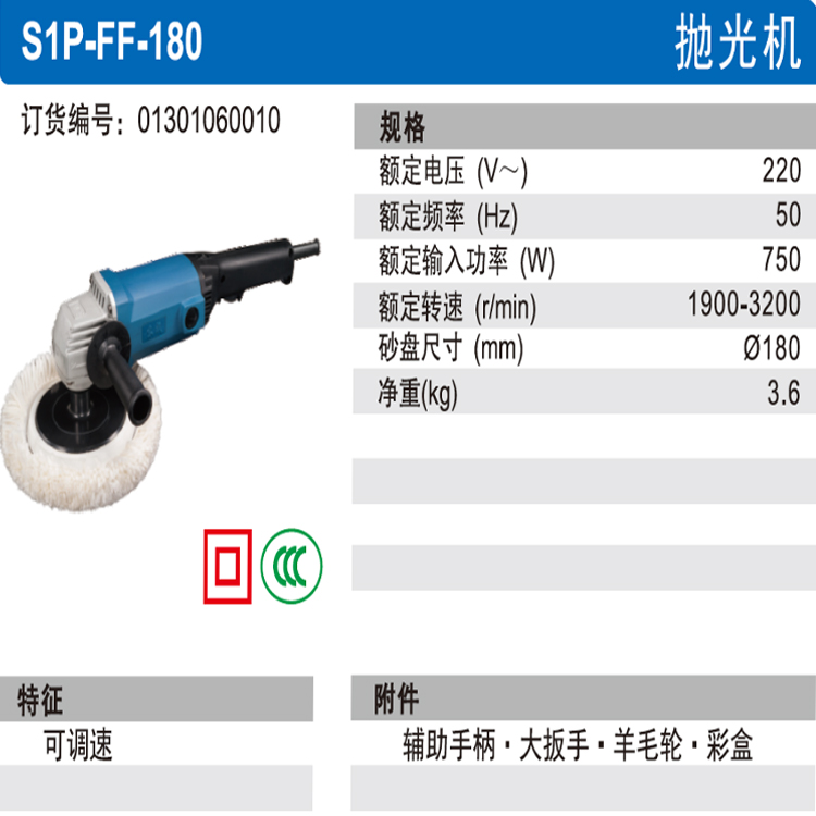 東成拋光機S1P-FF-180多功能機頭,機頭可安裝海綿輪,羊毛輪、波浪海綿輪等
