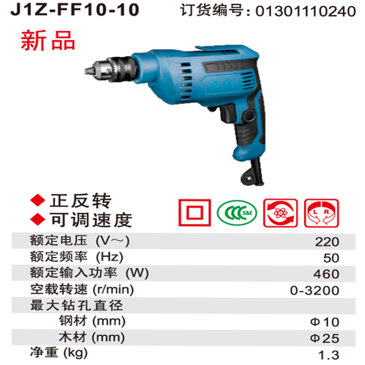 東成手電鉆J1Z-FF10-10鉆頭范圍3-16毫米