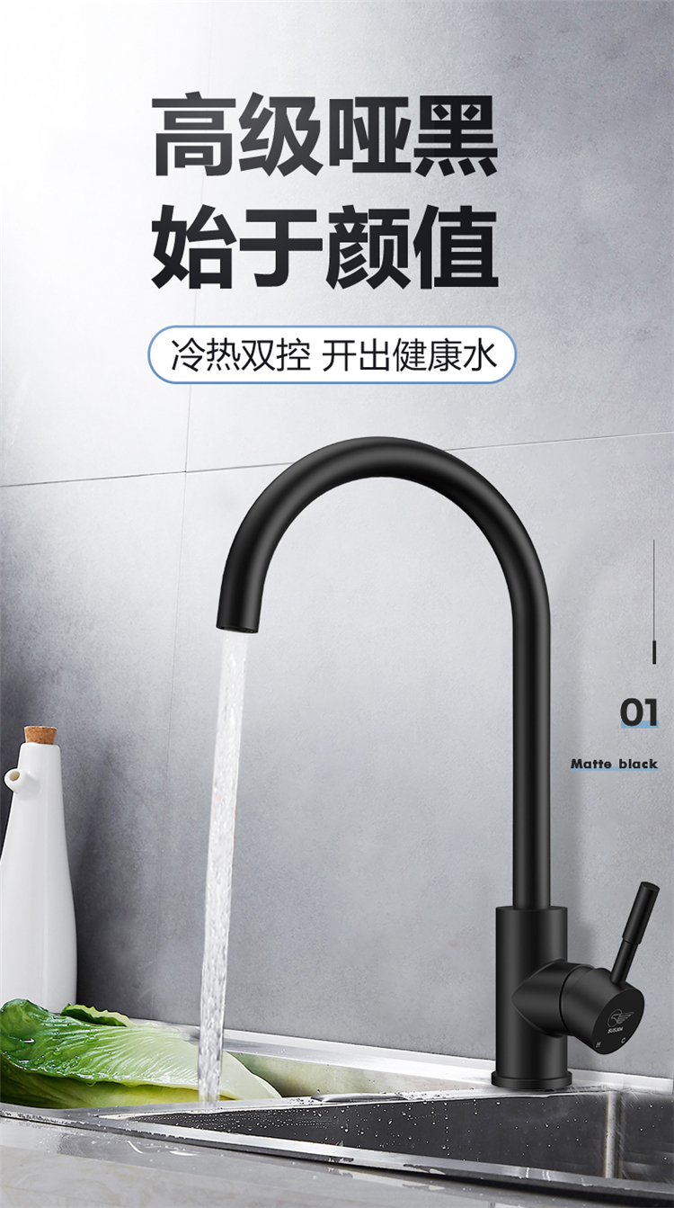 廚房黑色水龍頭水槽冷熱龍頭銅鑄主體 創(chuàng)新凈鉛工藝 減少細(xì)菌污染,水質(zhì)更潔凈