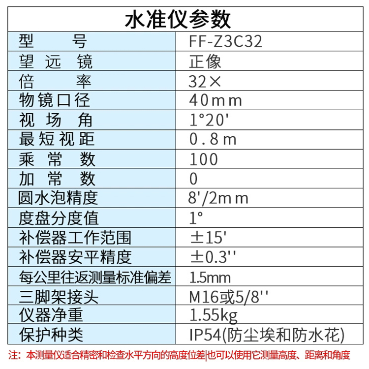 水準(zhǔn)儀產(chǎn)品參數(shù),本測(cè)量?jī)x適合精密和檢查水平方向的高度位差