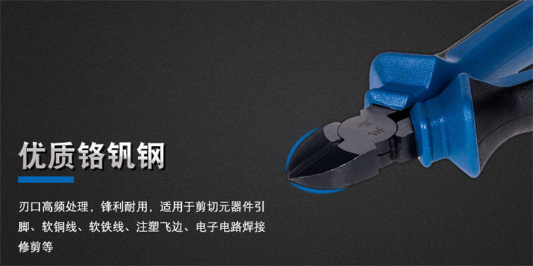 東成斜嘴鉗優(yōu)質(zhì)鉻釩鋼、刃口高頻處理 ,鋒利耐用,適用于剪切元器件引腳、軟銅