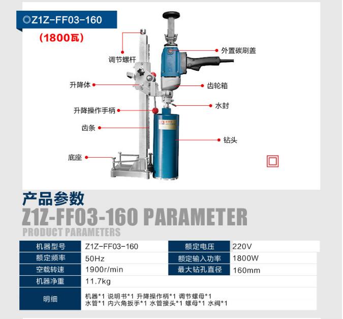 東成金剛石鉆孔機(jī)Z1Z-FF03-160 相關(guān)參數(shù)
