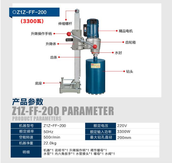 東成金剛石鉆孔機(jī)Z1Z-FF-200相關(guān)參數(shù)