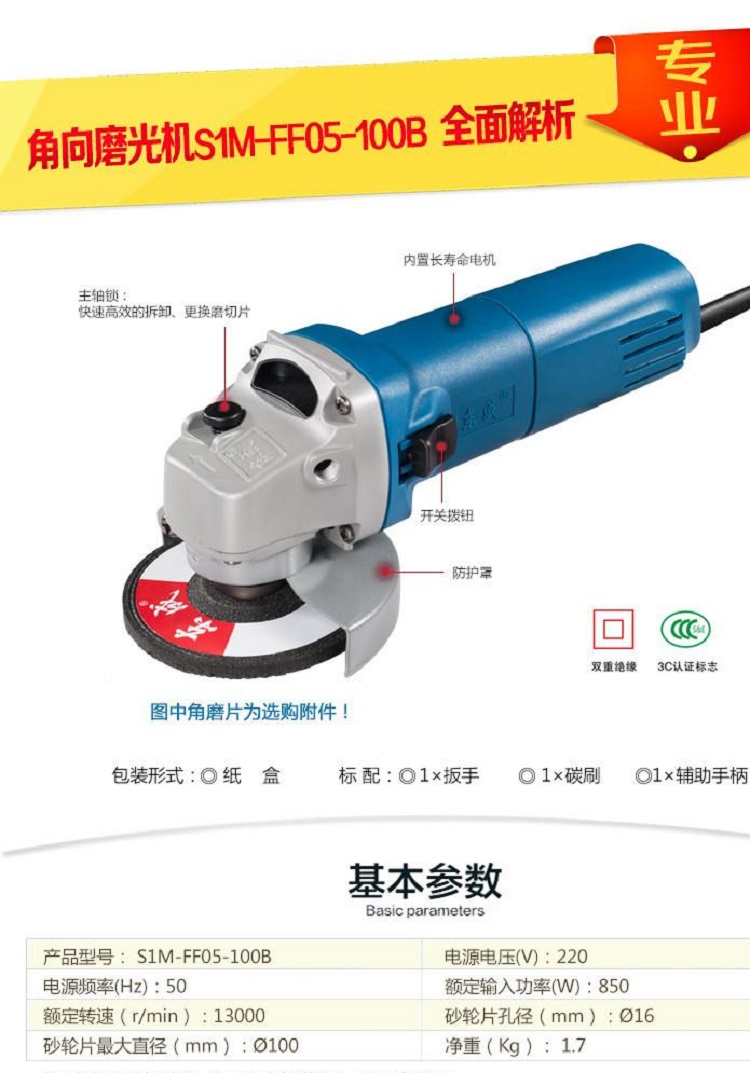 東成角磨機S1M-FF05-100B大功率手磨機磨光機純銅電機,堅固耐用,性能穩(wěn)定