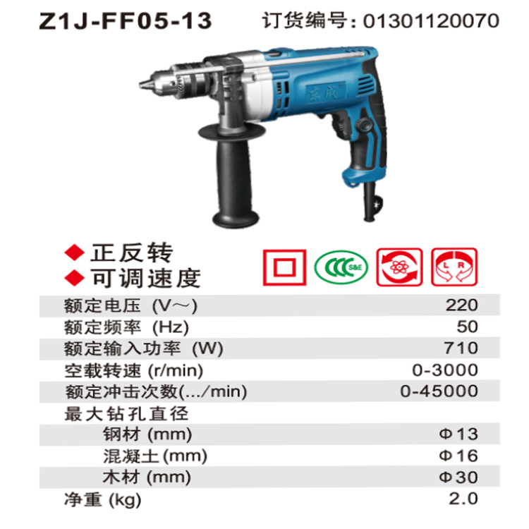 東成沖擊電鉆Z1J-FF05-13電鉆功能,邊錘邊鉆,只錘不鉆