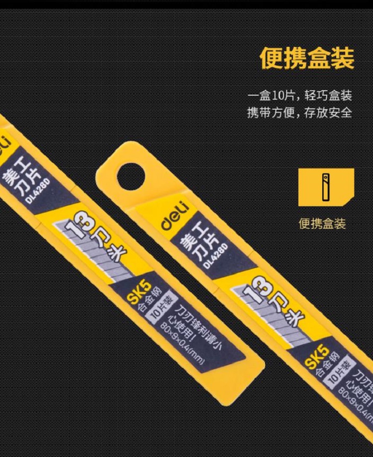 得力美工刀片低碳合金碳材質(zhì)刀片,方便快捷,耐磨