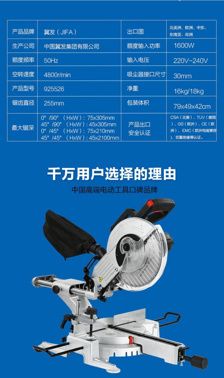 冀發(fā)10寸255MM多功能鋸鋁機(jī) 鋁材木材切割機(jī) 45度斜切鋸界鋁機(jī)