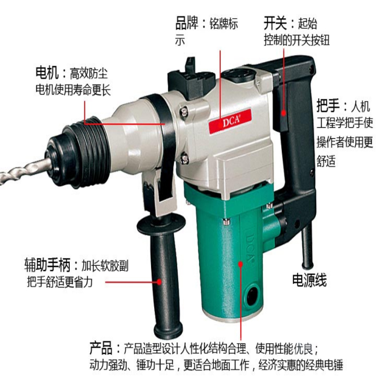 DCA充電式電錘ADZC24(E型)良好的減震系統(tǒng):可以使操作人員握持舒適,