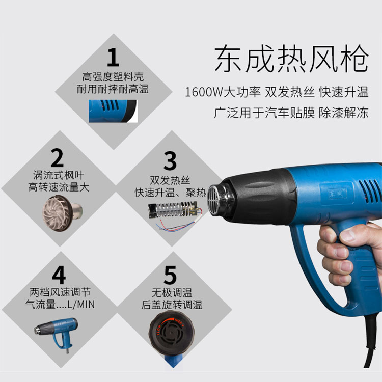 東成熱風槍DQB02-1600/QB03-2000東城熱吹風槍汽車貼膜烤槍