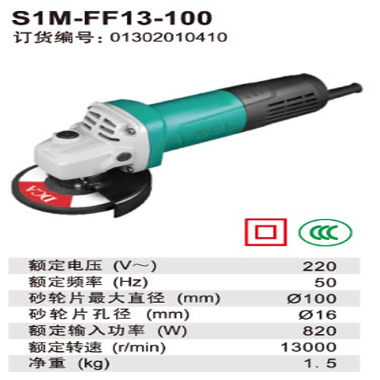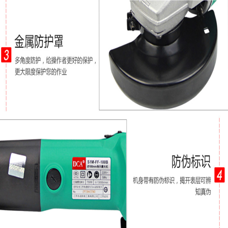 DCA角向磨光機S1M-FF13-100雙重絕緣機身 防漏電 有效避免漏電危險 安全使用