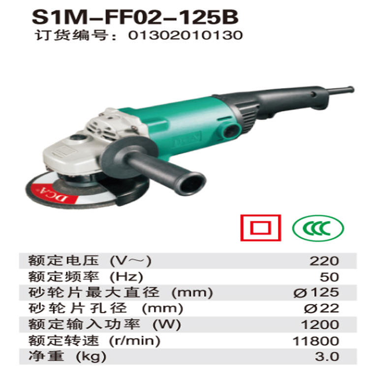DCA角向磨光機S1M-FF02-125B雙重絕緣機身 防漏電