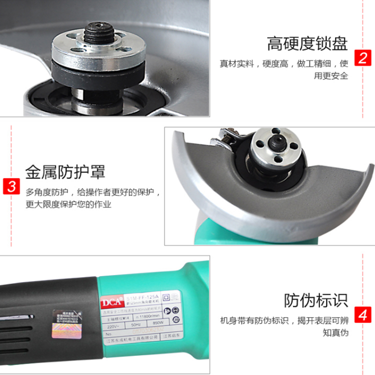 DCA角向磨光機S1M-FF-150A金屬防護罩高強度防護罩使用更加安全。