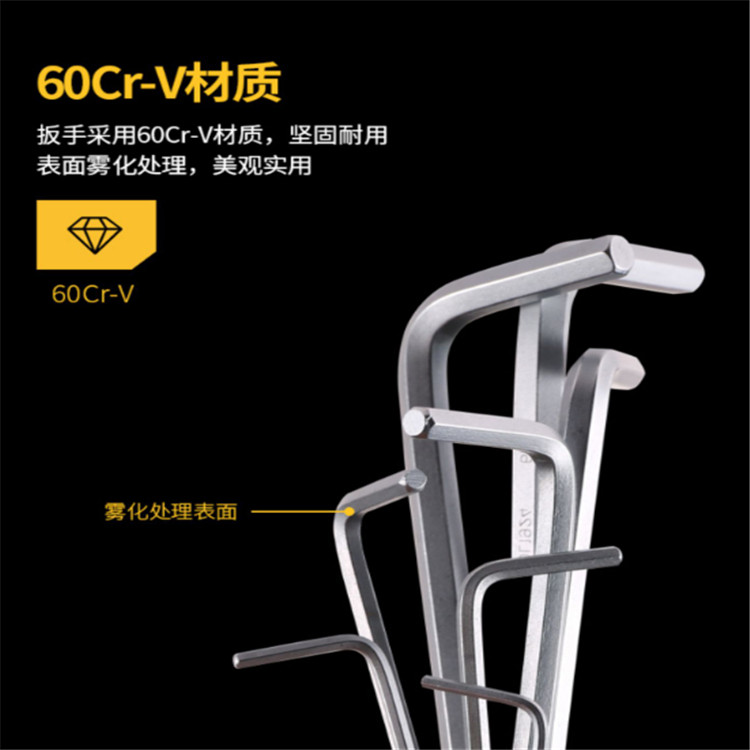 得力吊環(huán)平頭內(nèi)六角10件套采用優(yōu)質(zhì)鉻釩鋼制造,整體熱處理,硬度可達52-56HRC。