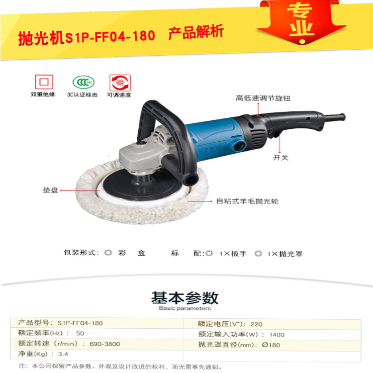 東成拋光機S1P-FF04-180動力強勁,用途廣泛場合,安裝、拆卸方便