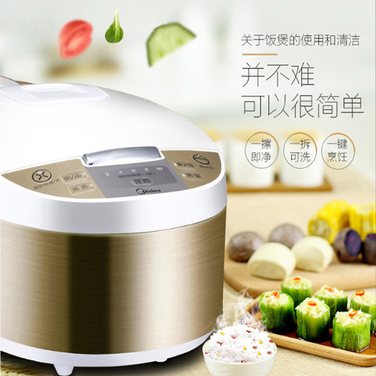 美的(Midea)電飯煲拉絲不銹鋼機(jī)身設(shè)計,一擦即凈。