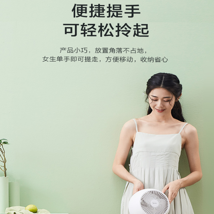 美的(Midea)智能小風(fēng)扇帶有便捷提手,可輕松拎起。