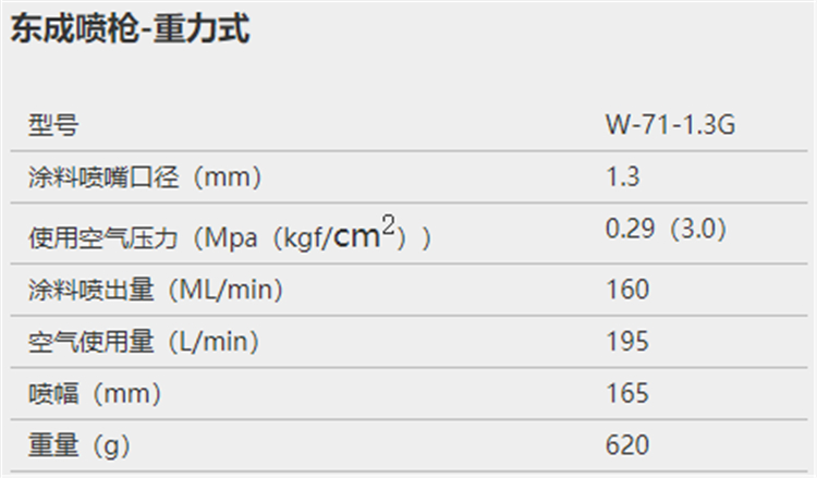 東成噴槍基本參數(shù)圖