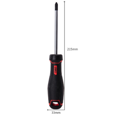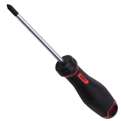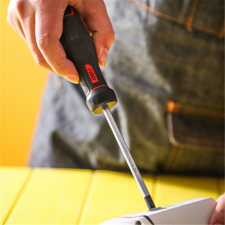 得力S2一字螺絲批橡塑雙材料手柄,表面有精致花紋,握柄前端防轉(zhuǎn)凸點設(shè)計。