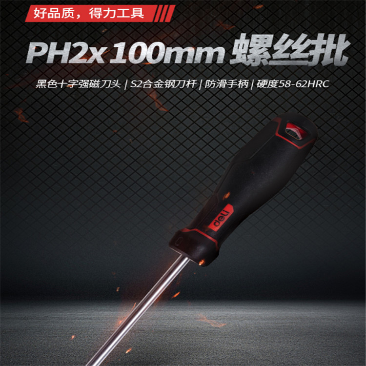 得力S2一字螺絲批功能端發(fā)黑處理, 批桿激光刻字,使用整理的時候更加方便快捷。