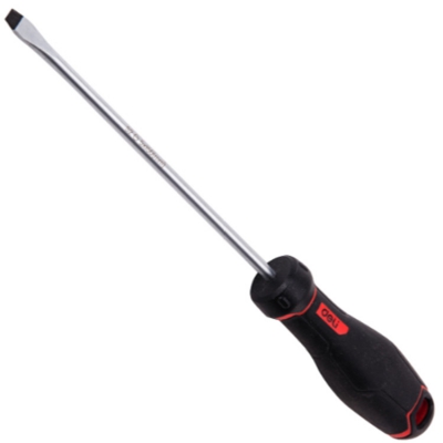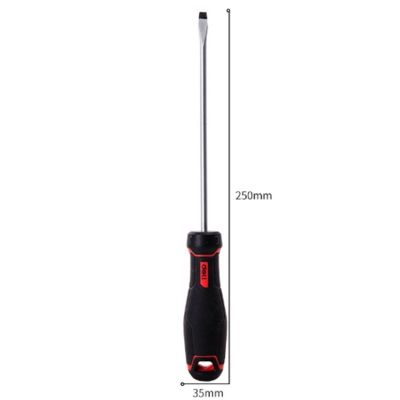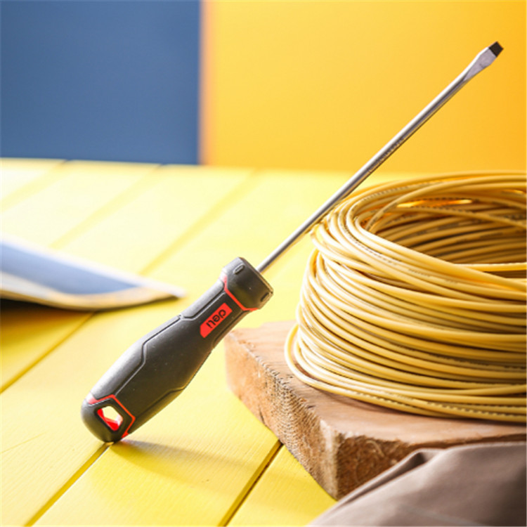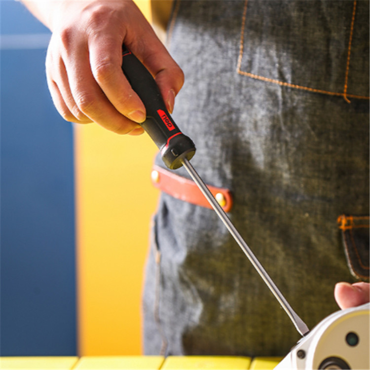 得力一字螺絲刀橡塑雙材料手柄,表面有精致花紋,握柄前端防轉(zhuǎn)凸點設(shè)計。