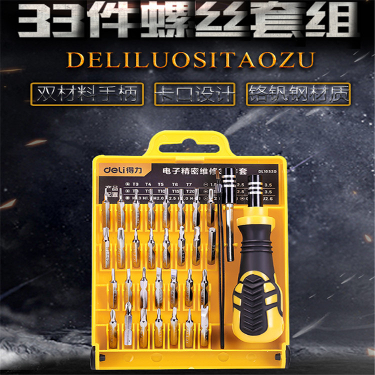 得力螺絲刀套裝33合一功能,一套工具應(yīng)付日常所需。