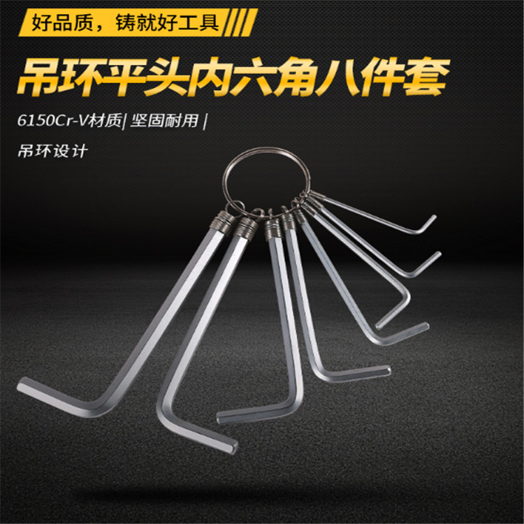 得力 吊環(huán)平頭內(nèi)六角8件套鉻釩鋼內(nèi)六角螺絲扳手