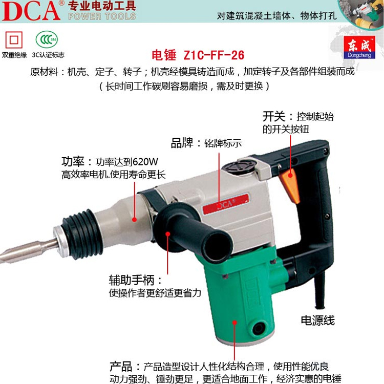 DCA電錘Z1C-FF-26主要用來(lái)在混凝土、樓板、磚墻和石材上鉆孔。