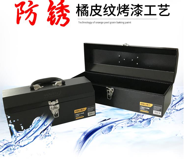 得力鐵盒工具箱金屬工具收納箱手提大號家用工具箱車載鐵皮儲物箱