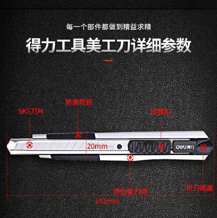 小號美工刀采用SK5合金鋼刀片,雙層刀鋒設(shè)計(jì)
