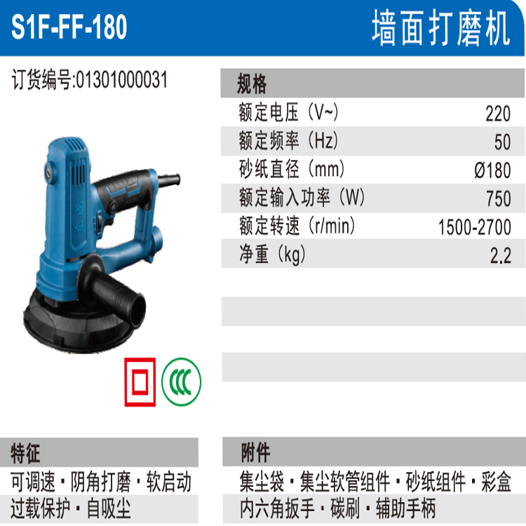 東成 墻面打磨機 膩子打磨機 砂紙機砂光機無塵打磨機 電動工具 S1F-FF-180