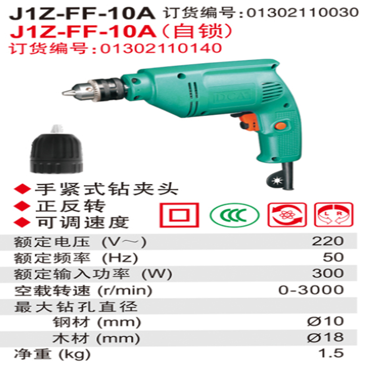 DCA手電鉆J1Z-FF-10A/J1Z-FF-10A金屬鉆夾頭穩(wěn)固不脫落,高強度精鋼打造,