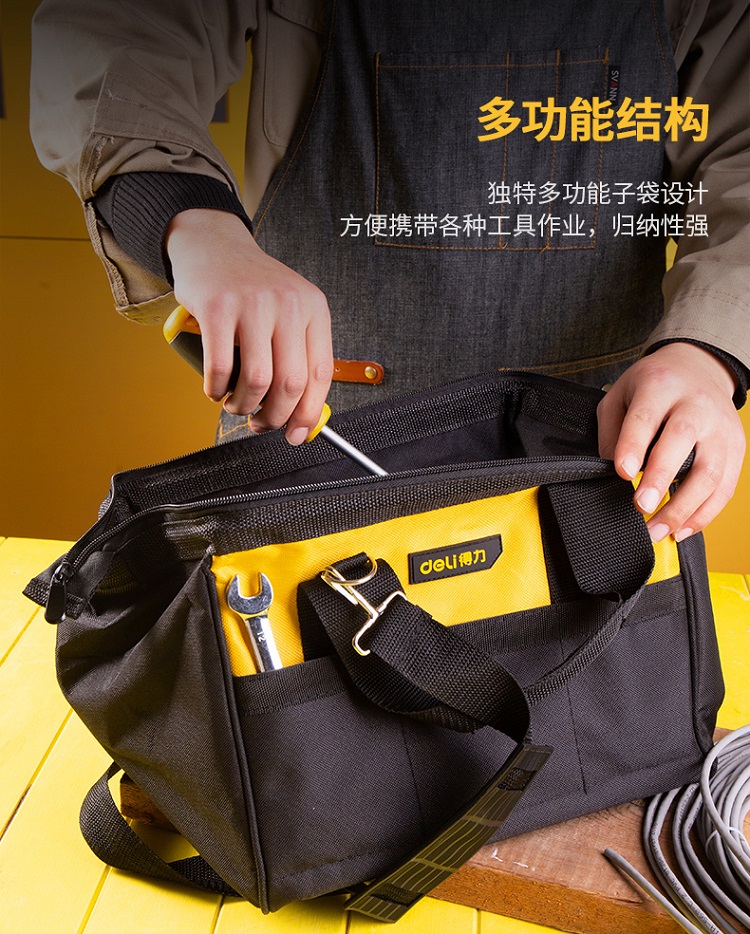 得力工具包多功能滌綸布大加厚防水收納包電工木工工具包