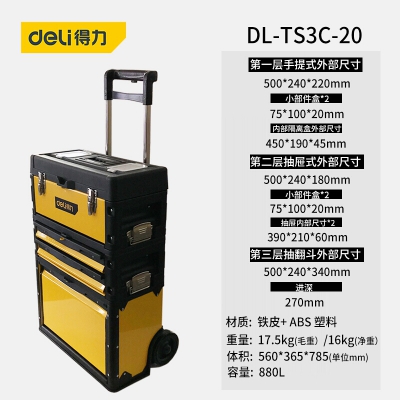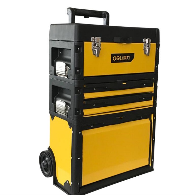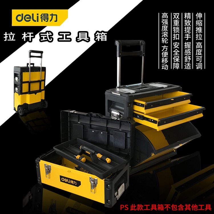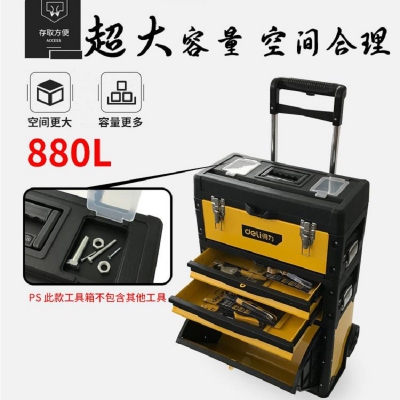 得力拉桿式工具箱帶輪子三層工具箱疊加箱子多功能安裝維修設(shè)備箱
