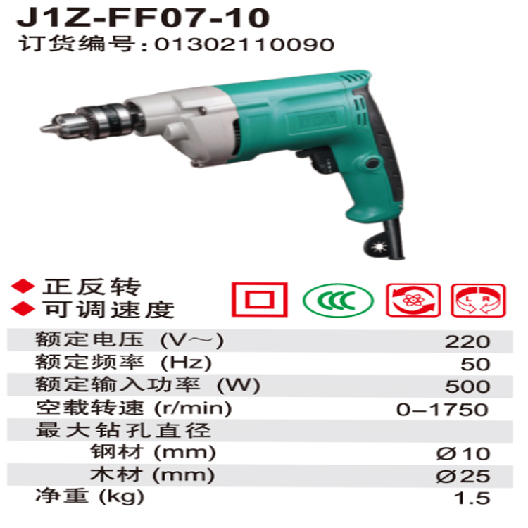 DCA手電鉆J1Z-FF07-10精鋼夾頭不掉鉆頭 鉆頭范圍3-16毫米 三爪加持牢固
