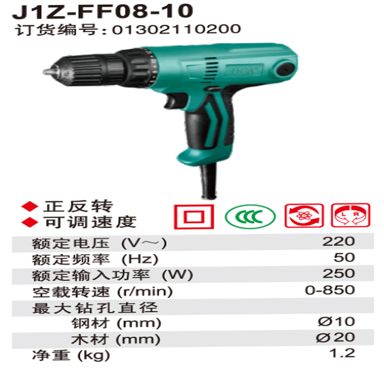 DCA手電鉆J1Z-FF08-10正反轉(zhuǎn)撥桿快速切換 單手操作便捷操作