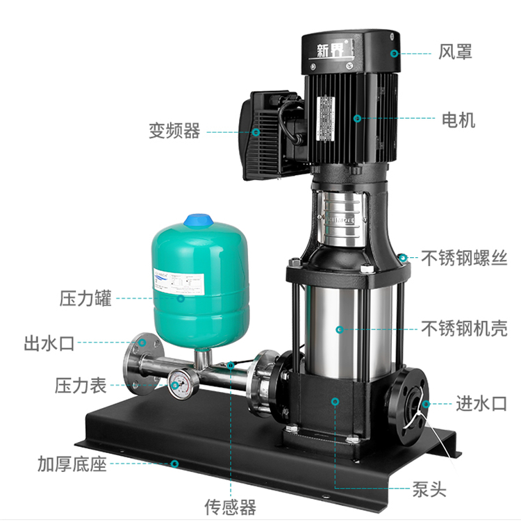 大元立式恒壓變頻泵過(guò)流部件為304不銹鋼,冷熱水通用,耐腐蝕,清潔衛(wèi)生,應(yīng)用