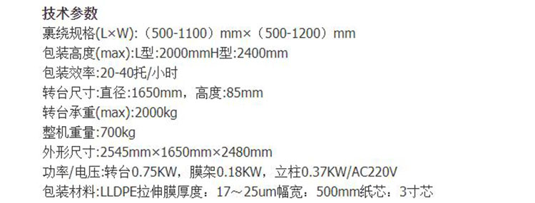 光明牌GM2000-B+預(yù)拉壓頂纏繞機(jī) 商品參數(shù)圖