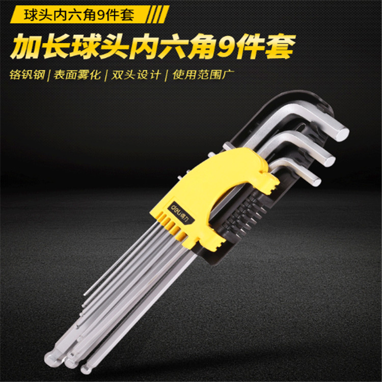 得力工具內(nèi)六角平頭內(nèi)六角扳手球頭扳手花型內(nèi)六角扳子組套9件套