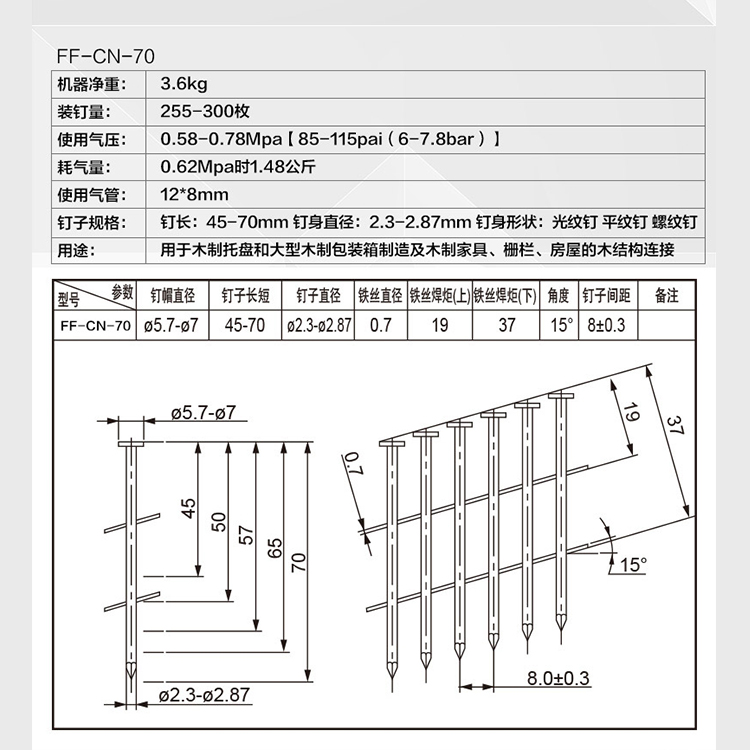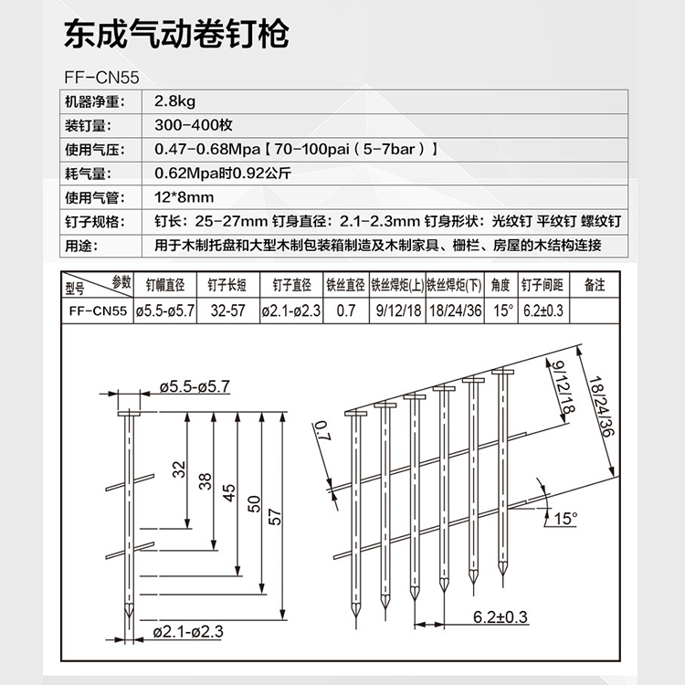 氣動卷釘槍產(chǎn)品參數(shù),用于木質(zhì)托盤和大型木箱