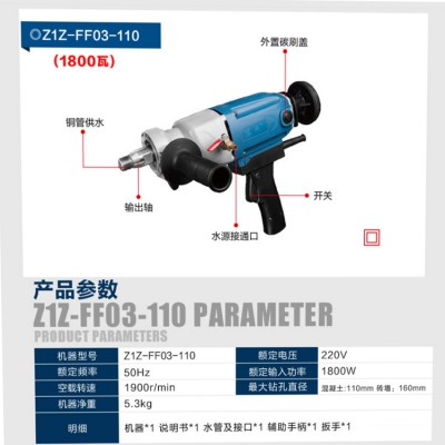 東成金剛石鉆孔機(jī)Z1Z-FF03-110銅管供水無(wú)水封款銅管供水,適合干打、濕打