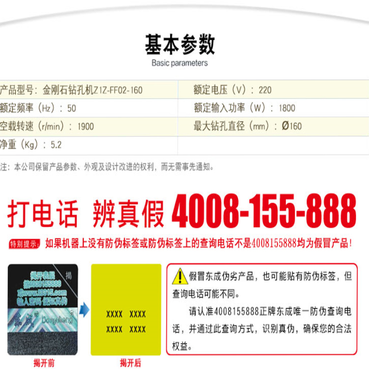 東成金剛石鉆孔機Z1Z-FF02-160混凝土、磚石結(jié)構(gòu)、瀝青路免進行破碎、鑿平