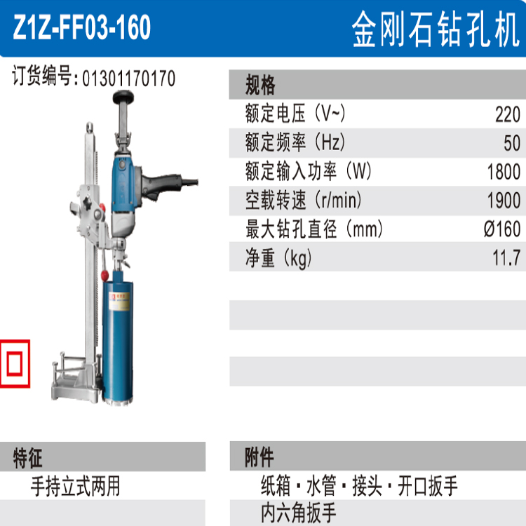 東成金剛石鉆孔機(jī)Z1Z-FF03-160水鉆機(jī)三檔齒輪機(jī)械變速,多功能適用多種場景