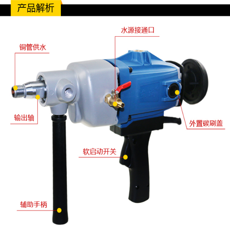 東成金剛石鉆孔機(jī)Z1Z-FF-180水嘴接口自帶噴水接口,只需要接上水管即可,方便