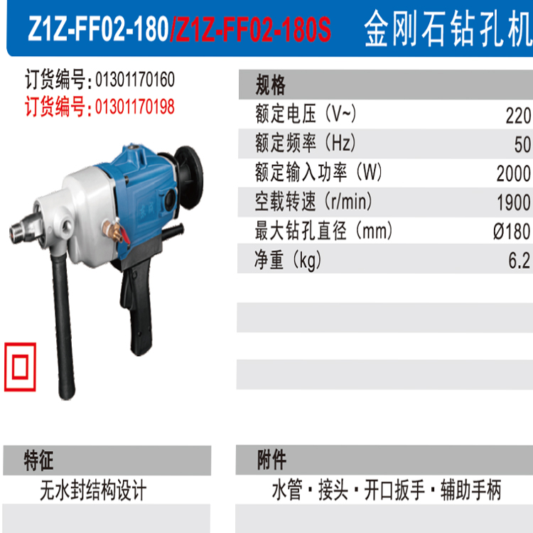 東成金剛石鉆孔機Z1Z-FF02-180Z1Z-FF02-180S精鋼鑄造,精細加工精度更高