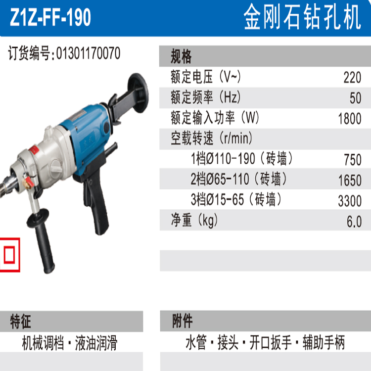 東成金剛石鉆孔機(jī)Z1Z-FF-190廣泛應(yīng)用于管道敷設(shè)、機(jī)械安裝、給排水設(shè)施建設(shè)等